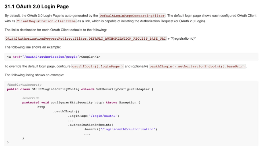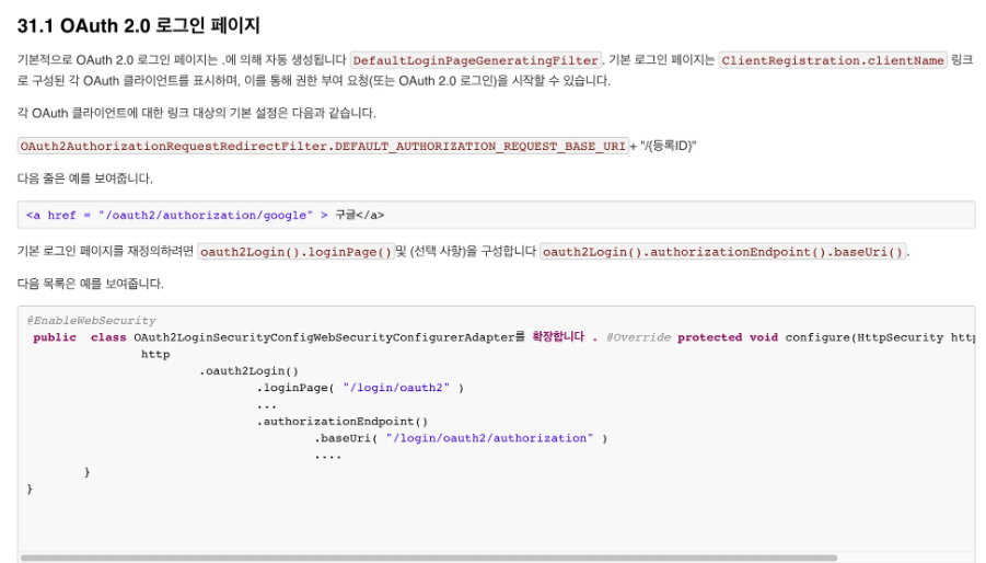 - Spring OAuth2 Client 라이브러리에서 기본으로 설정된 경로이며 이 경로 또한 커스텀 가능