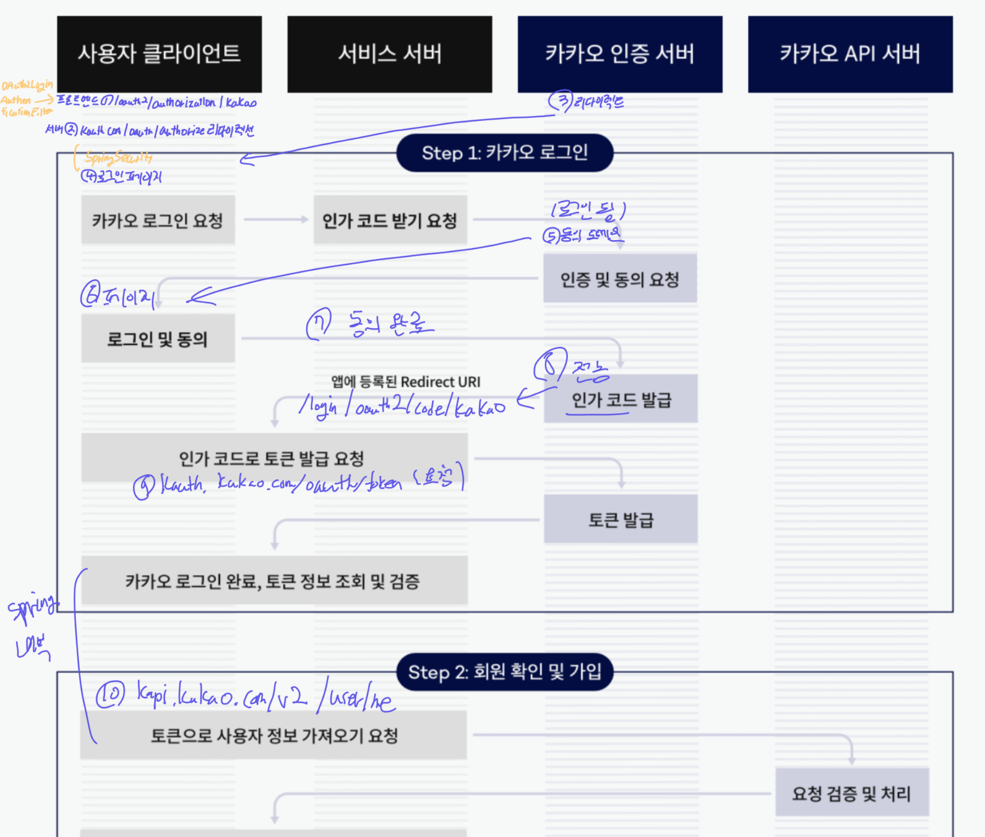 - 역할: 여기서는 authorization_code가 사용되고 있는데, 이는 사용자에게 카카오 로그인 화면을 제공하고, 사용자가 인증을 완료하면 인증 코드를 클라이언트에게 전달하는 방식. 클라이언트는 이 인증 코드를 사용하여 액세스 토큰을 받음.