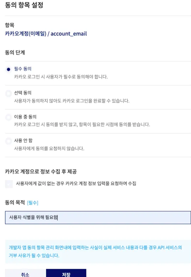 - 역할: 카카오 API에서 사용자로부터 동의를 받을 때 어떤 정보에 접근할 것인지를 지정 여기서는 profile_nickname, account_email, profile_image의 세 가지 정보에 대한 접근 권한을 요청