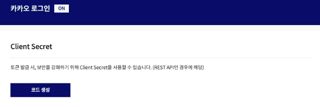 - 카카오 개발자 콘솔에서 발급받은 클라이언트 비밀키