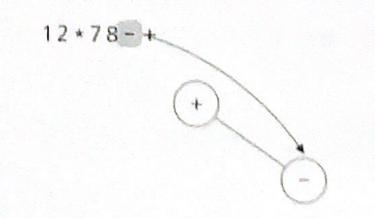 2. '+' 연산자 다음의 토큰은 '-' 연산자이다. 수식을 뒤에서부터 읽고 있다는 것을 기억하자. 이 토큰 역시 또 다른 두 개의 토큰이 필요하다. 일단 '-'을 오른쪽 자식 노드로 만들어준다.