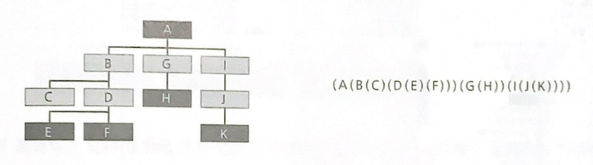 이 표현법은 같은 레벨의 노드들을 괄호로 같이 묶어 표현하는 방법