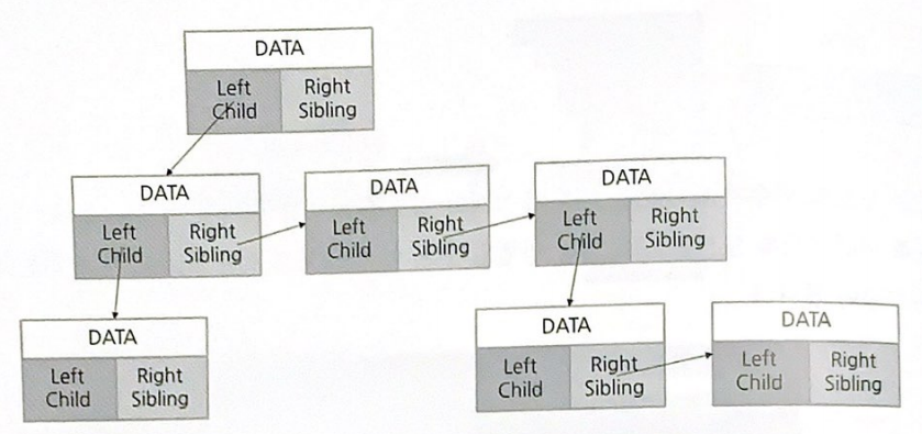 트리에서 어느 한 노드의 모든 자식 노드를 얻으려면 일단 왼쪽 자식 노드에 대한 포인터만 있으면 된다. 이 포인터를 이용해서 왼쪽 자식 노드의 주소를 얻은 후, 이 자식 노드의 오른쪽 형제 노드의 주소를 얻고, 또 그 다음 오른쪽 형제 노드의 주소를 계속해서 얻어 나가면 모든 자식 노드를 얻을 수 있다.