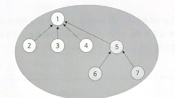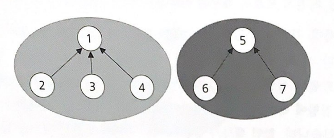 일반 트리나 이진 트리는 모두 부모가 자식을 가리키는 포인터를 갖고 있다. 분리 집합은 이와는 반대로 자식이 부모를 가리킨다.
