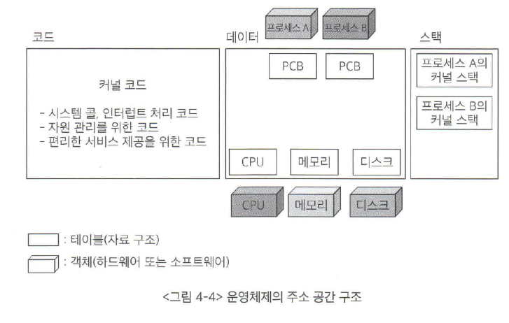 하드웨어, 소프트웨어 → 모든 자원을 관리하기 위한 자료구조를 각각 유지