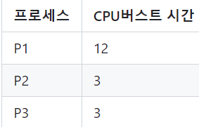 → CPU 버스트가 긴 프로세스 하나가 CPU 버스트가 짧은 프로세스 여러 개보다 먼저 도착했다고 가정.