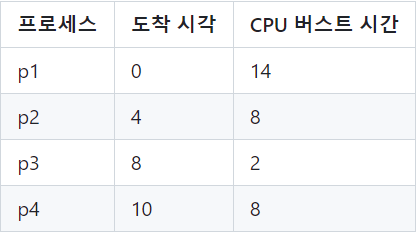 p4 = 4 (p4 의 도착 시간 부터 p2의 프로세스 시간)