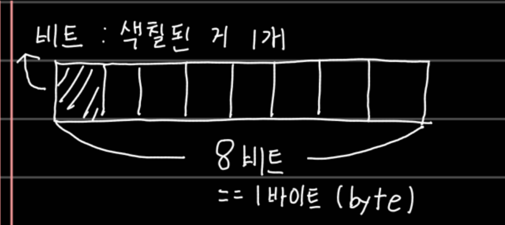 - 컴퓨터 메모리의 주소 체계는 바이트로 이루어져 있기 때문에, 바이트 단위로 데이터를 조작하고 저장하는 것이 자주 일어난다.