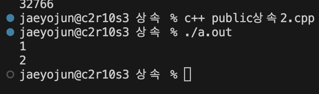 jaeyojun@c2r10s3 상속 % c++ public상속.cpp