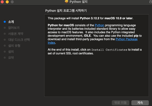 어 그런데 내가 설치한 버전과 다르다.. 나는 3.12.2를 설치했는데 뭔가 오류가 난 것 같다.