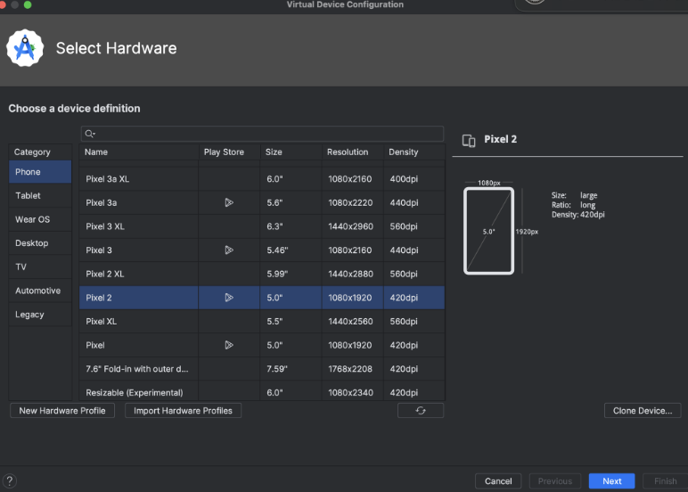 - 나는 Pixel2로 해볼거라 이거 선택.