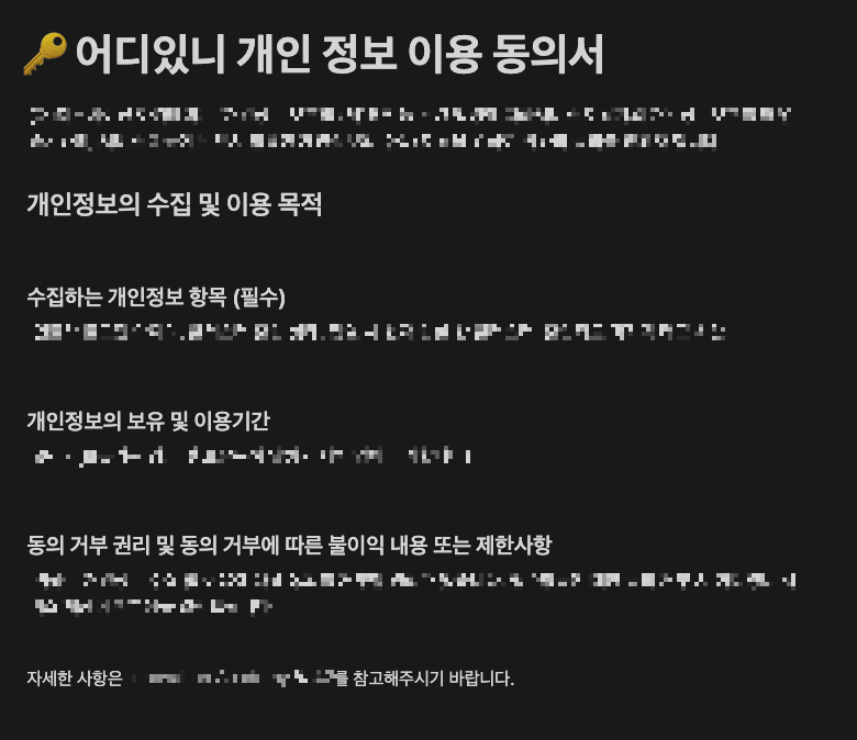 그래서 그냥 노션으로 개인 정보 이용 동의서를 만들었다