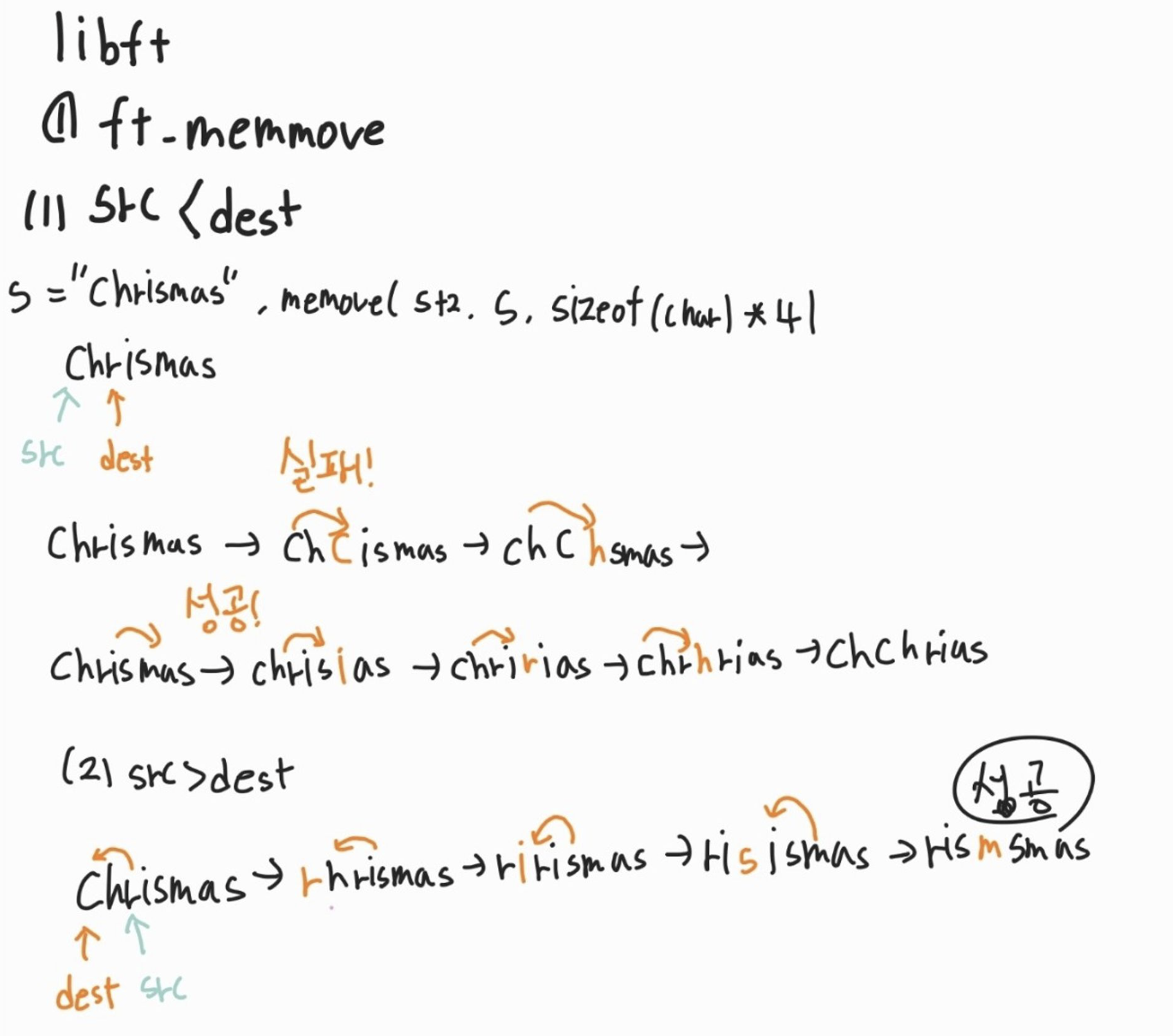 src가 dest 메모리 보다 작을 때는 뒤에서부터 채워줘야함.