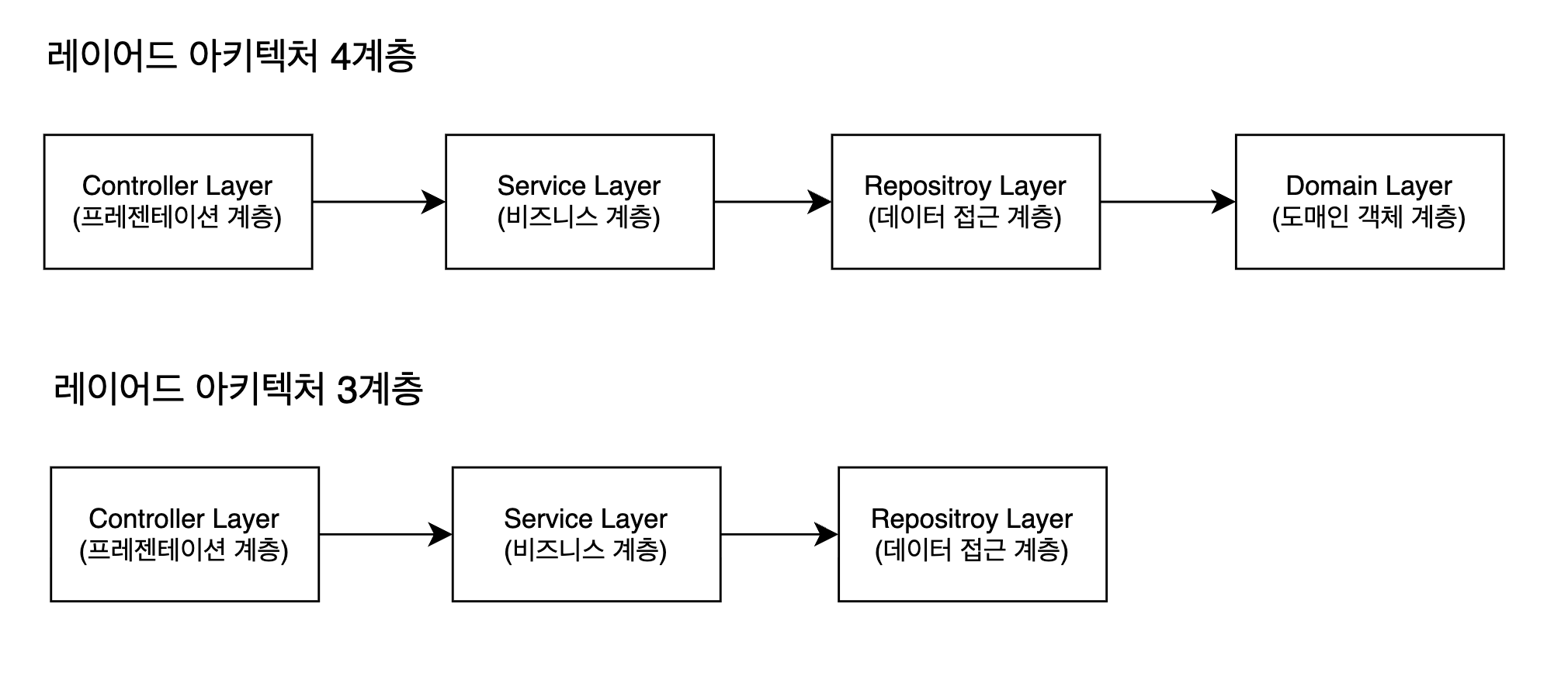 - DDD(Domain-Driven Design) 기반의 아키텍처는 로직에 도메인이 포함되기도 하고, 별도로 도메인 계층을 두기도 한다.