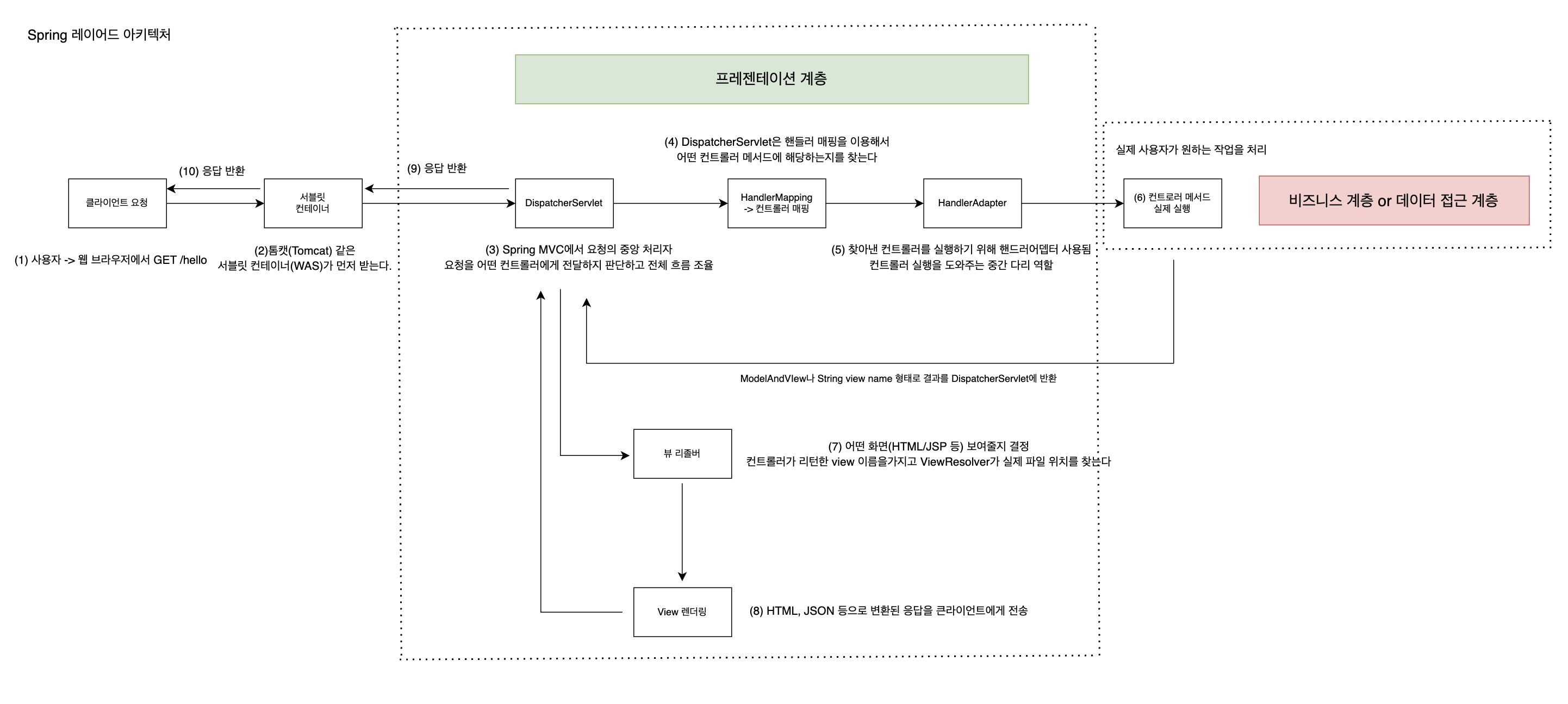 spring-boot-starter-web의 의존성을 사용할 때는 기본적으로 스프링 MVC 구조를 띠게 된다.