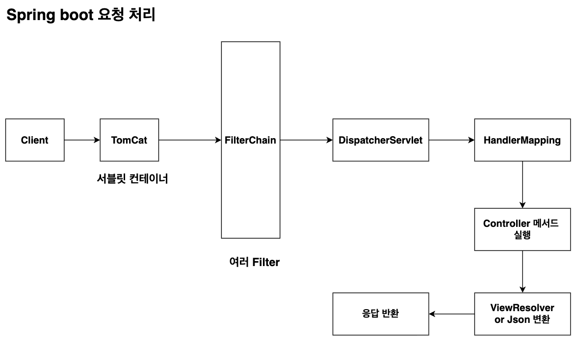 - 내장 Tomcat이 HTTP 요청을 받는다.