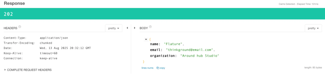 - String 타입을 보면 HEADERS 항목의 content-type을 보면 text/plain으로서 결과값으로 일반 문자열이 전달