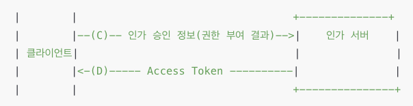 사용자 동의가 끝난 결과로 사용자의 허락을 나타내는 값을 클라이언트(우리 서버)가 받는다. 그 값이 이 4가지 중 하나라는 것 그러면 사용자의 허락을 나타내는 값을 클라이언트가 인가 서버에 제출하여 액세스 토큰으로 교환하는 형태
