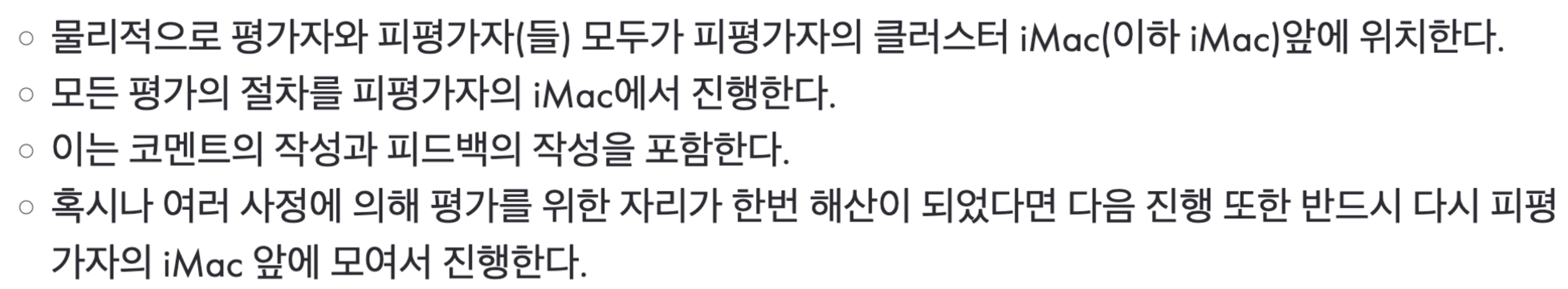 - 42서울에서 동료평가를 진행할 때의 지침은 클러스터 PC에서 진행을 해야된다.