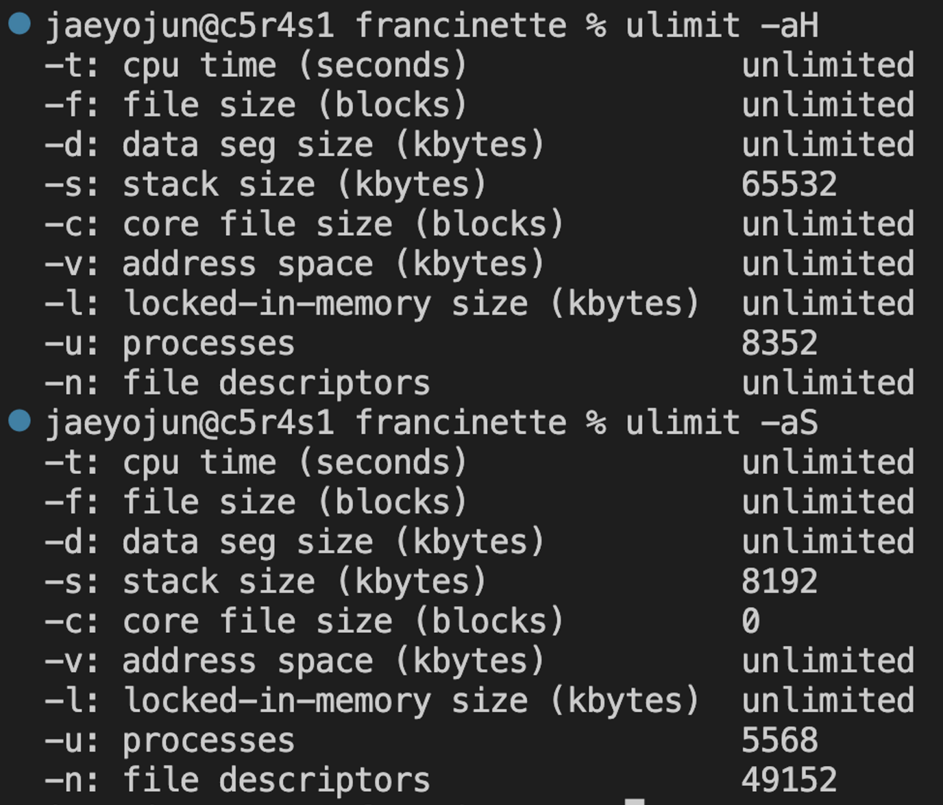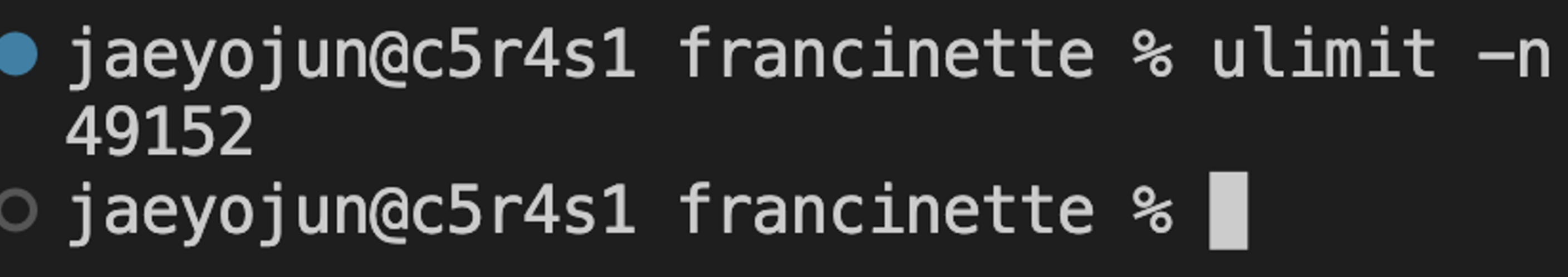 또한 파일 설명자에 대한 제한은 운영 체제 구성 및 VSC 또는 iTerm에 적용된 특정 설정 또는 기본 설정의 영향을 받을 수 있습니다.