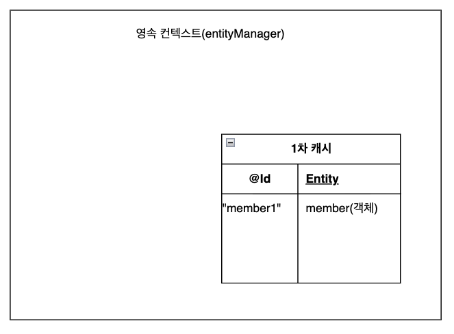 - 영속성 컨텍스트에서 위에서 말한 것처럼 식별자를 가지고 있고, 상태 관리(변경 감지), 트랜잭션 범위 내에서 객체 동일성 보장가 있었다.