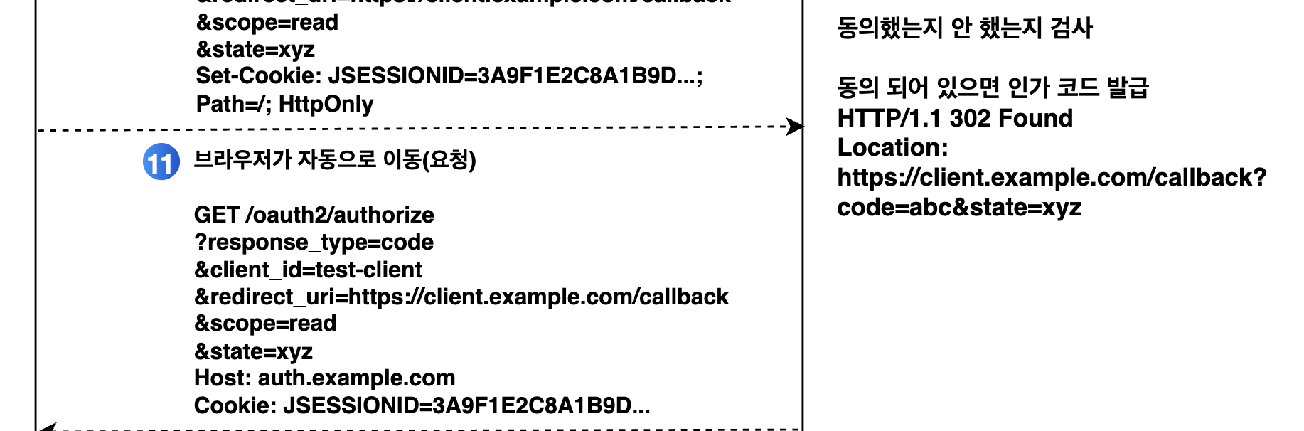 11. 브라우저가 자동으로 이동(요청) - 브라우저와 인가 서버 통신