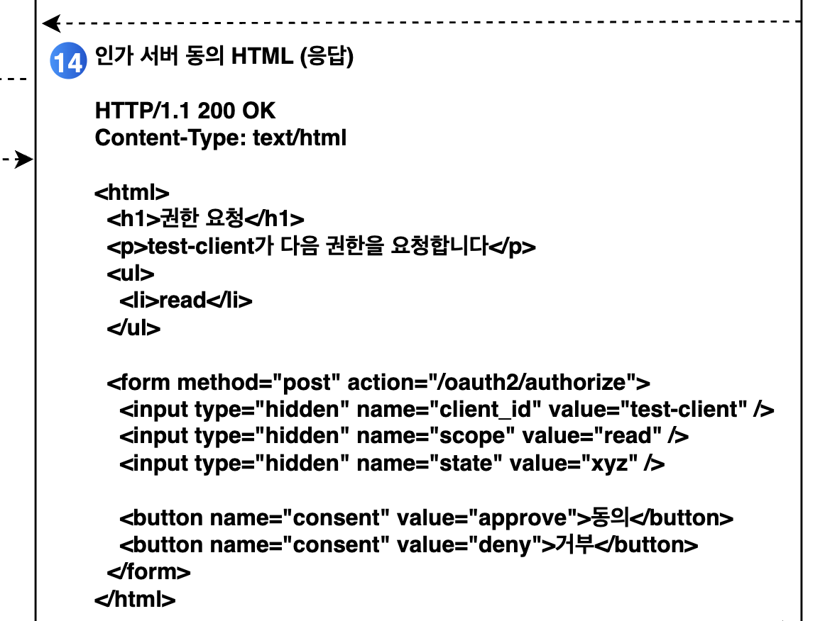 14. 인가 서버 동의 HTML (응답) - 브라우저와 인가 서버 통신