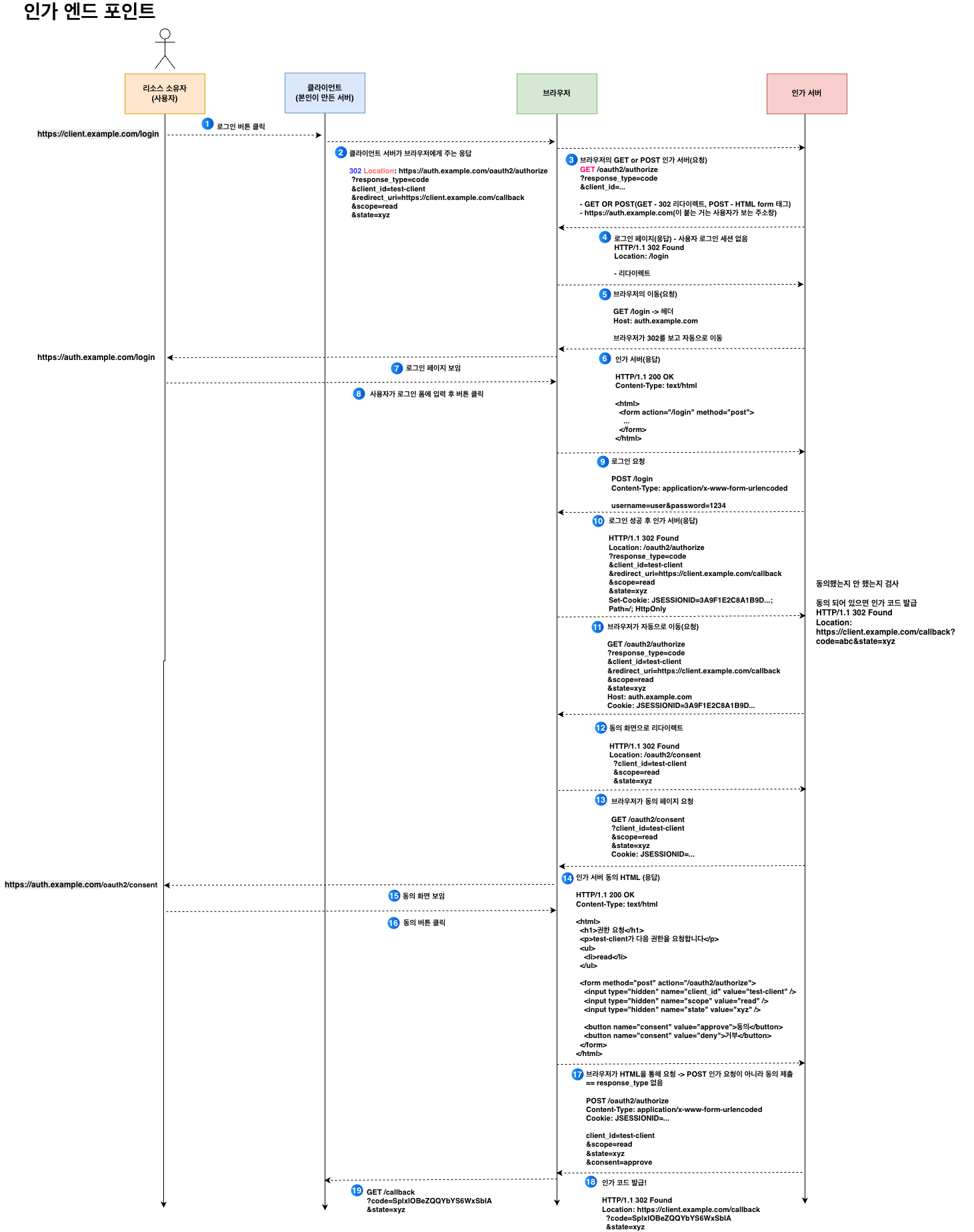 - 다음 그림은 인가 엔드포인트의 순서대로 그림을 그린 것이다.