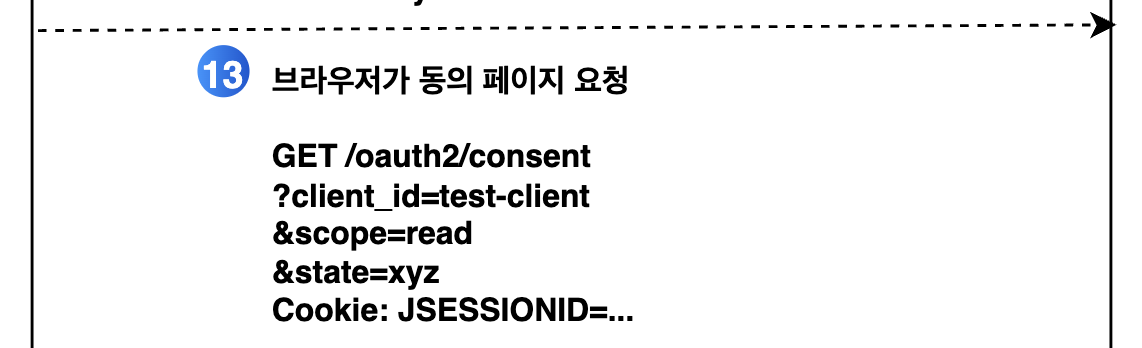 즉, “아직 이 사용자가 test-client가 read scope로 접근하는 걸 허용했는지 모른다” → 그래서 인가 코드 발급 안 하고 동의 화면 보여주러 감