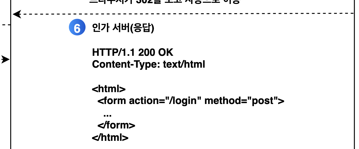 - 인가 서버는 로그인 요청이 온 사용자 로그인 세션이 없으면 브라우저에게 /login으로 302 리다이렉트를 보내줌