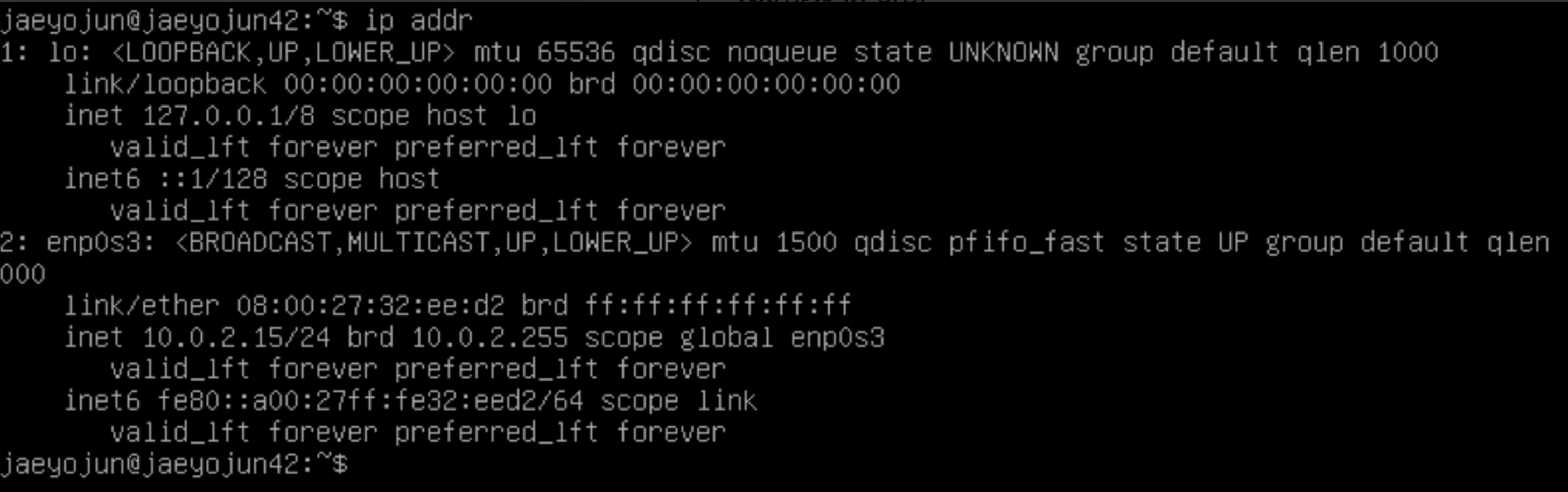 고정할 ip를 확보하기 위해 가상환경 ip를 확인