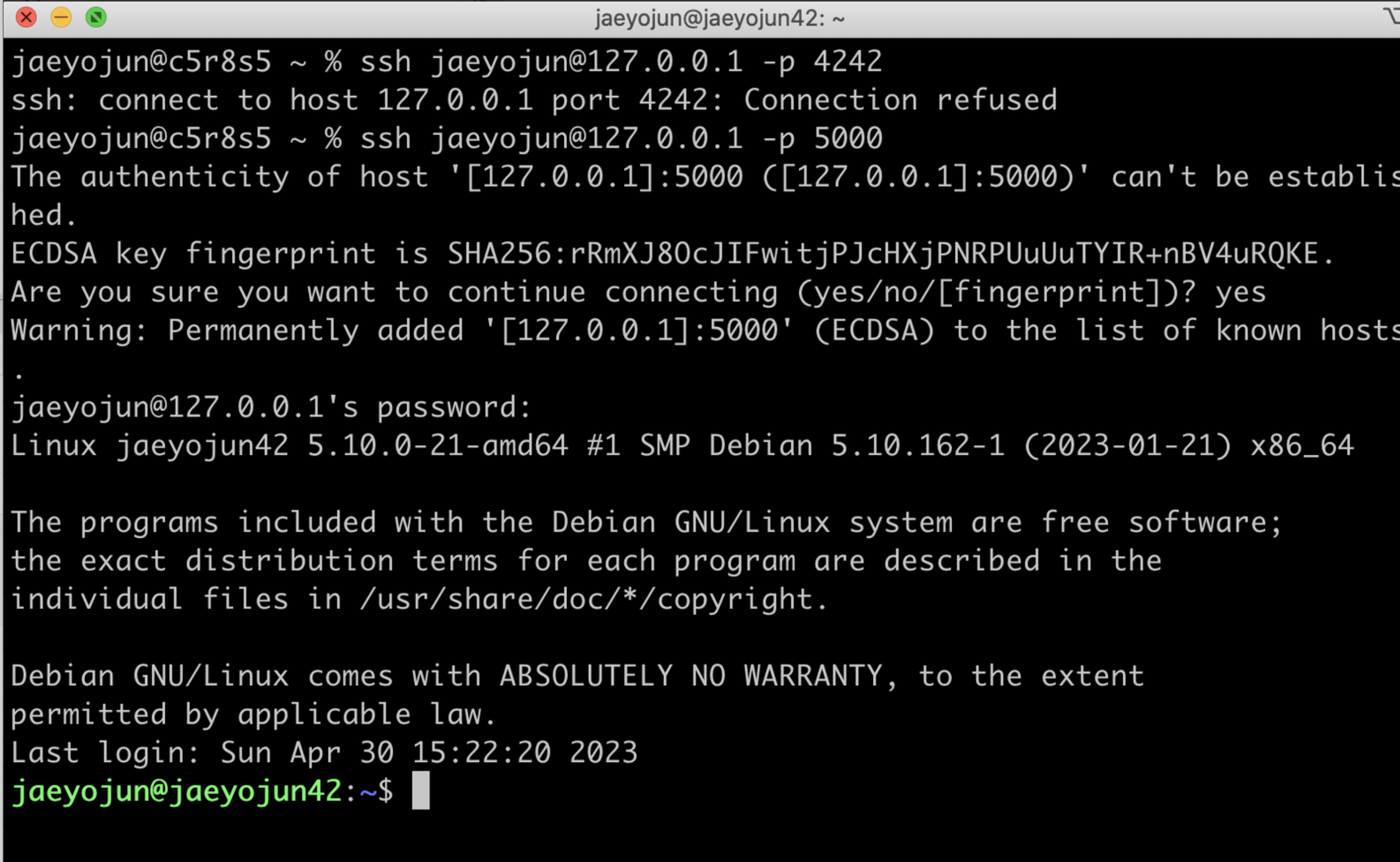- Host Port: 5000, 4242도 가능(임의로 설정가능)