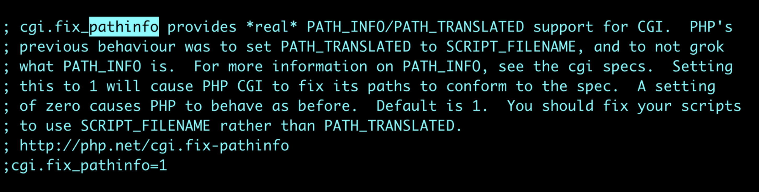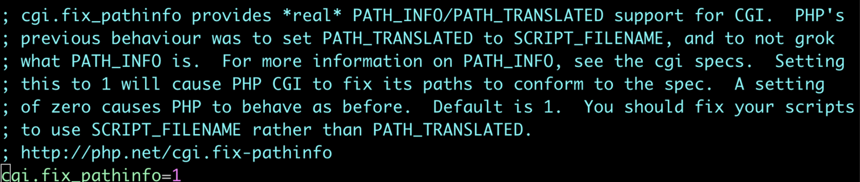 cgi.fix_pathinfo=1 행 주석을 해제한다!