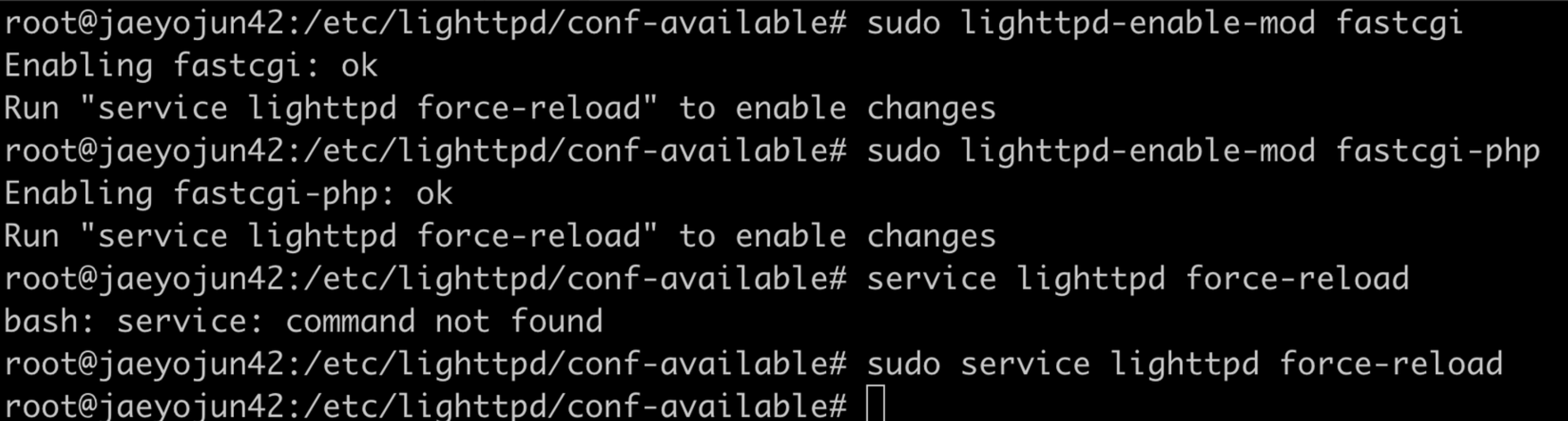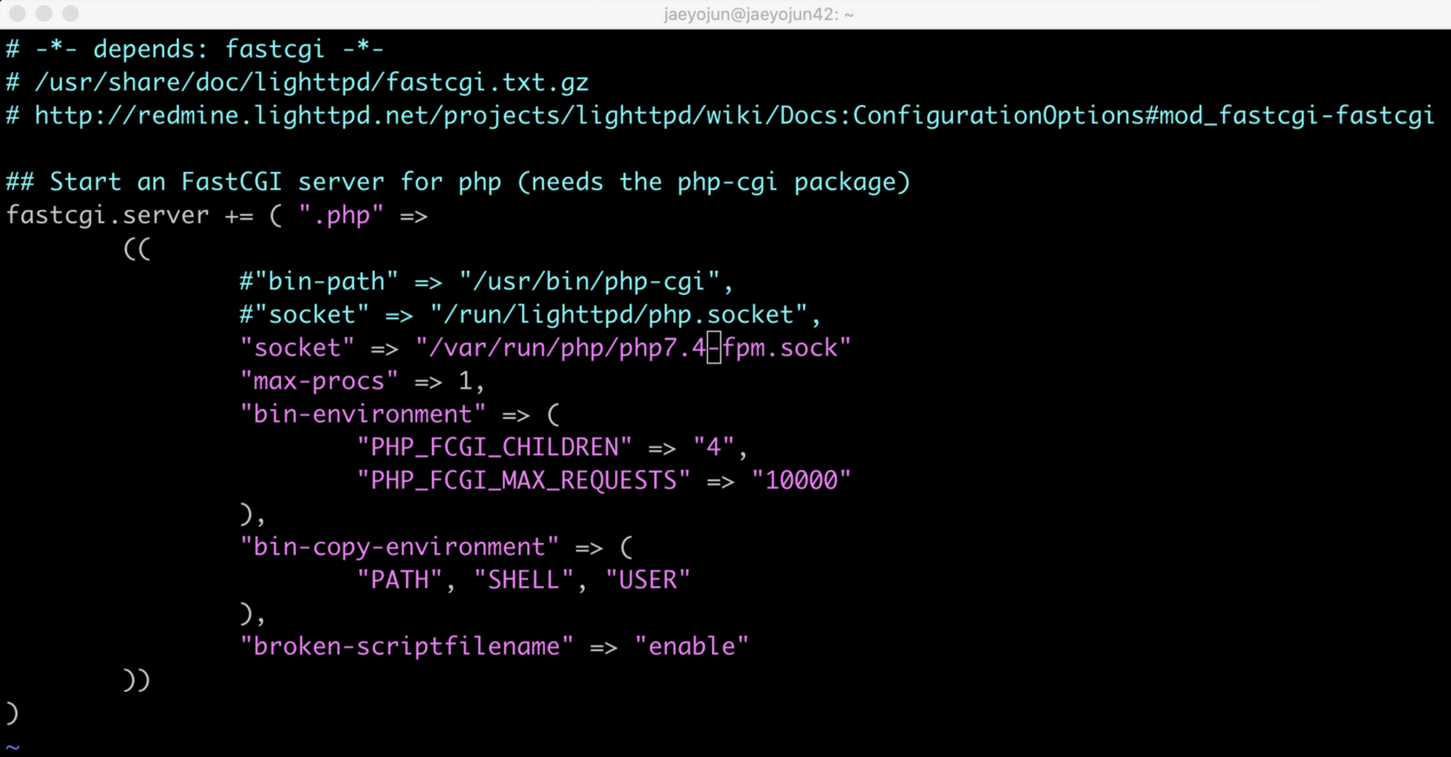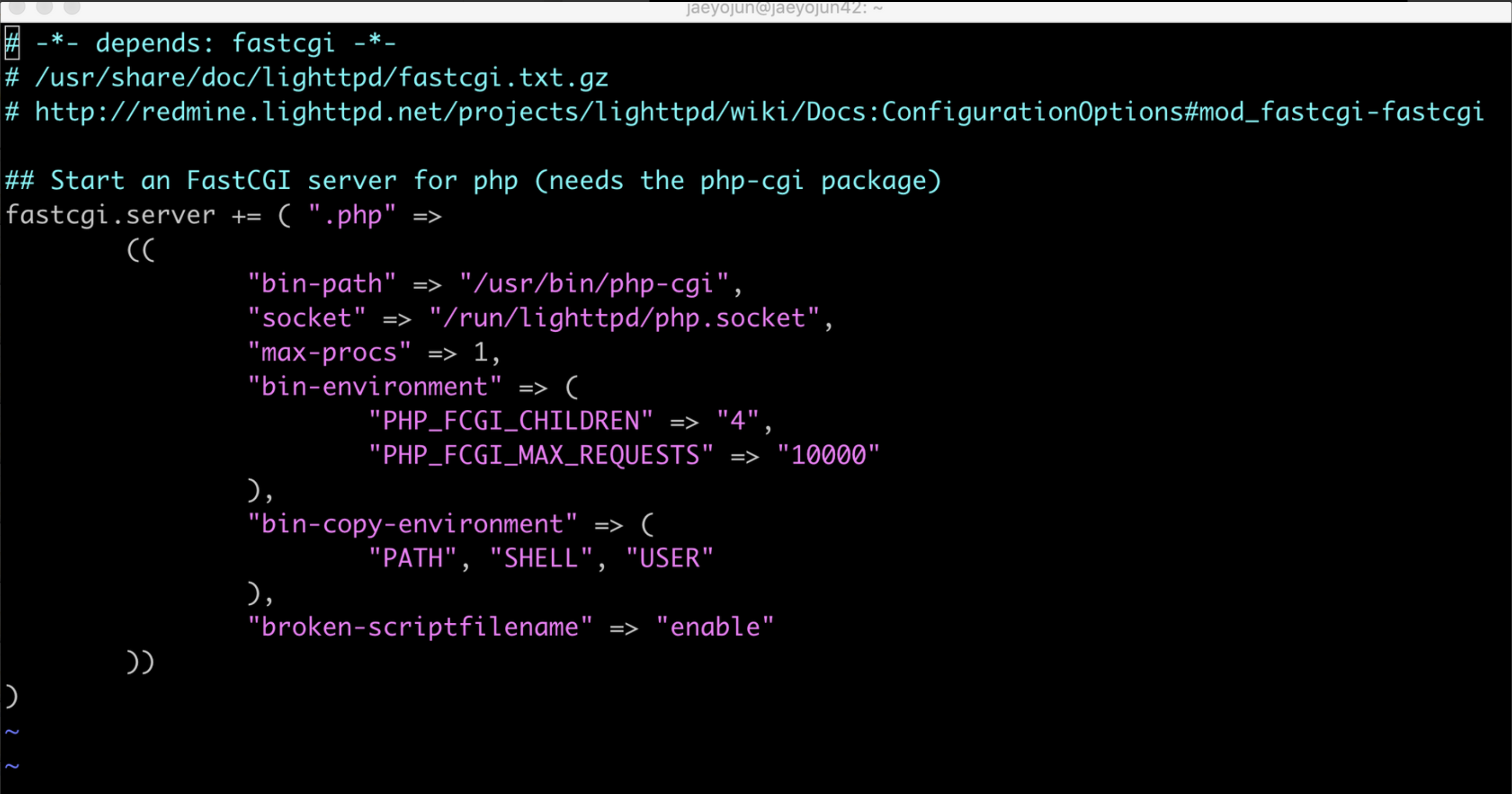 설치한 lighttpd의 Fastcgi 설정 파일 편집
