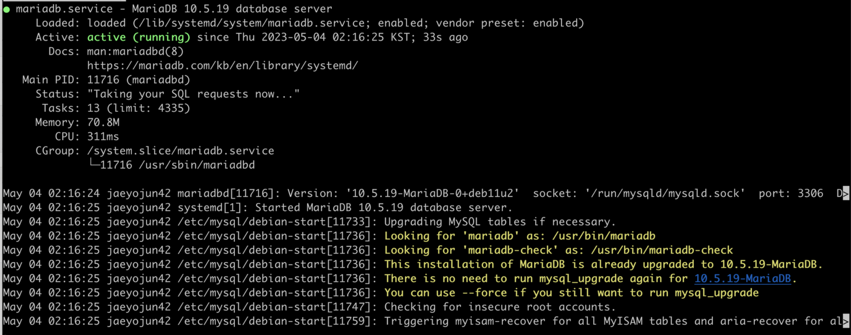 웹으로 웹 서버와 PHP가 정상적으로 동작하는 것을 확인했음.