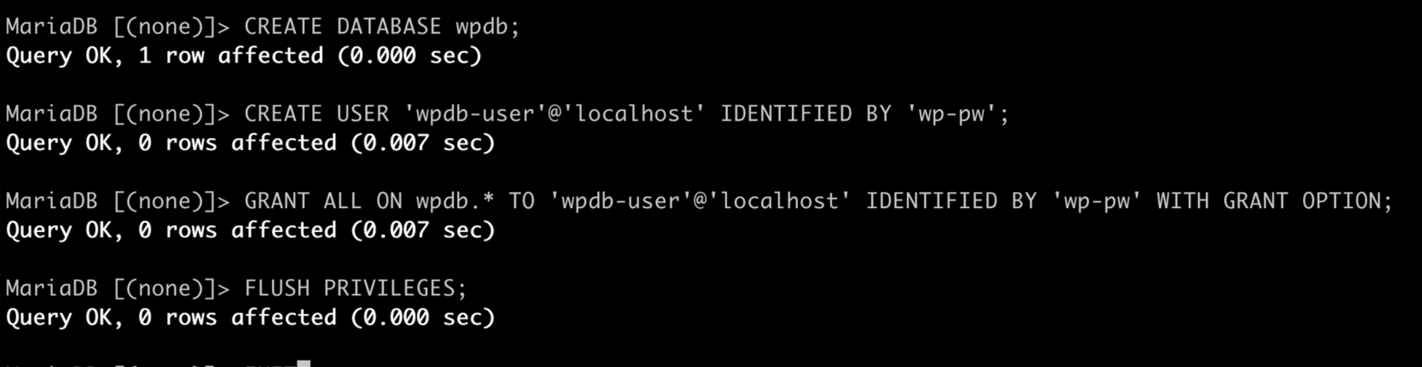 CREATE USER 'wpdb-user'@'localhost' IDENTIFIED BY 'wp-pw';