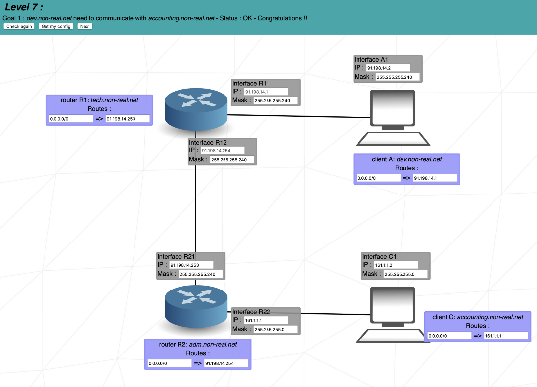 - R22, C1은 255.255.255.255.0을 사용해서 네트워크 구성
