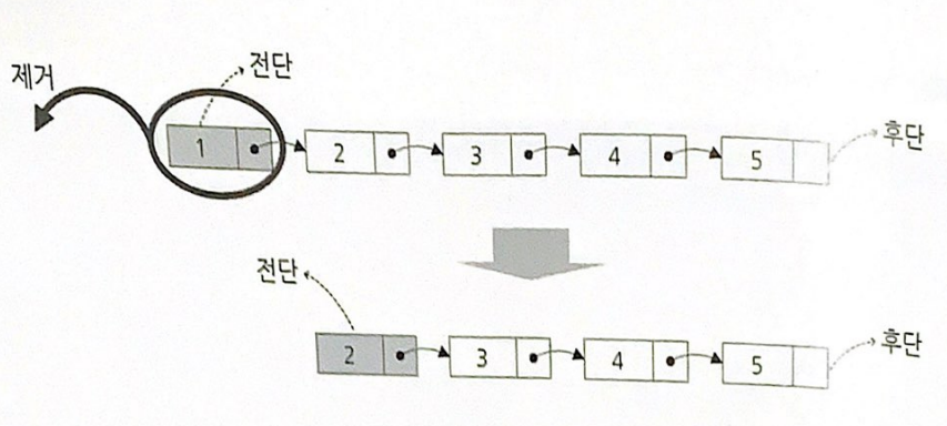 제거는 전단의 노드를 없애서 전단 뒤에 있는 노드를 새로운 전단으로 만드는 연산이다.
